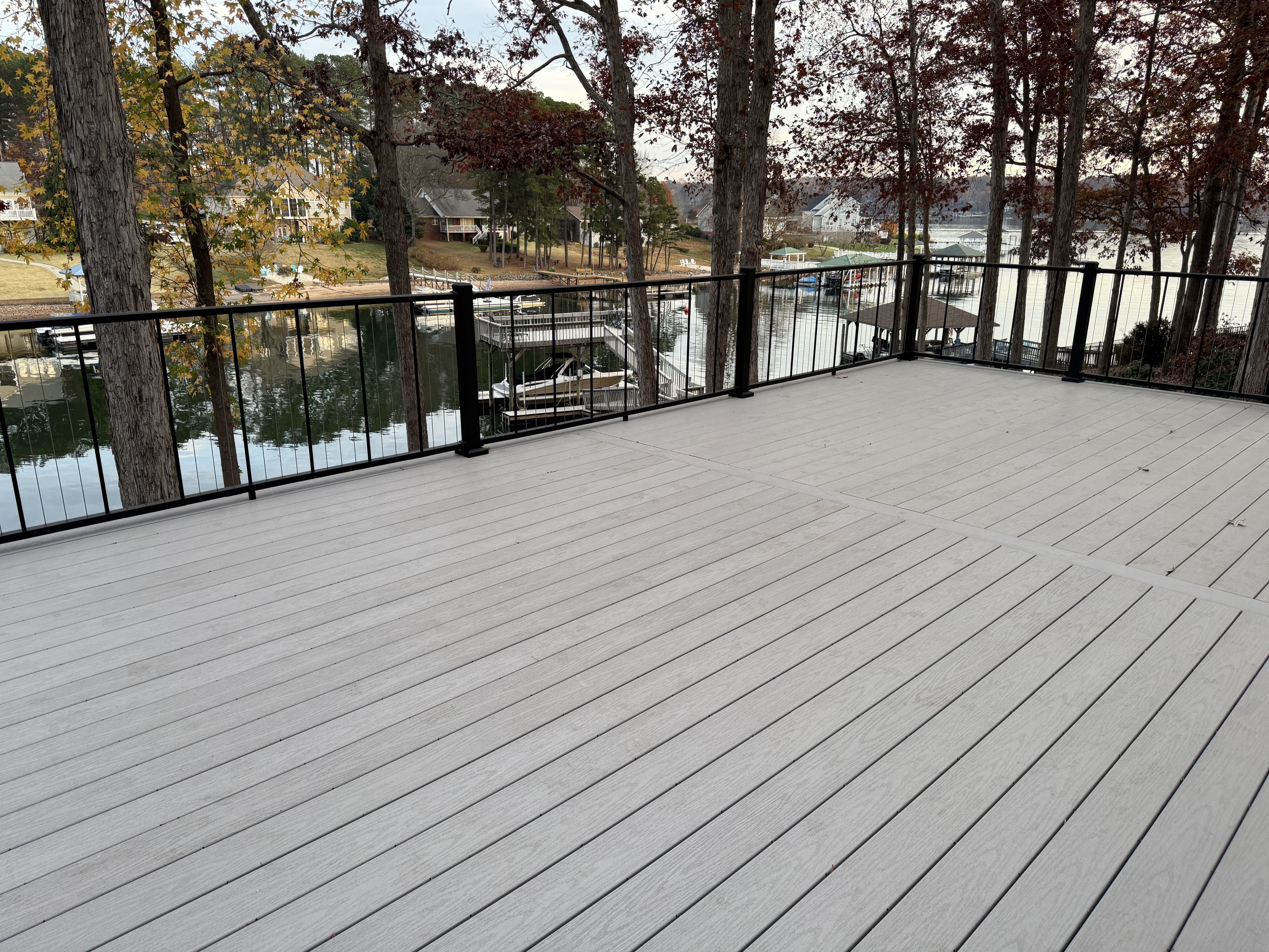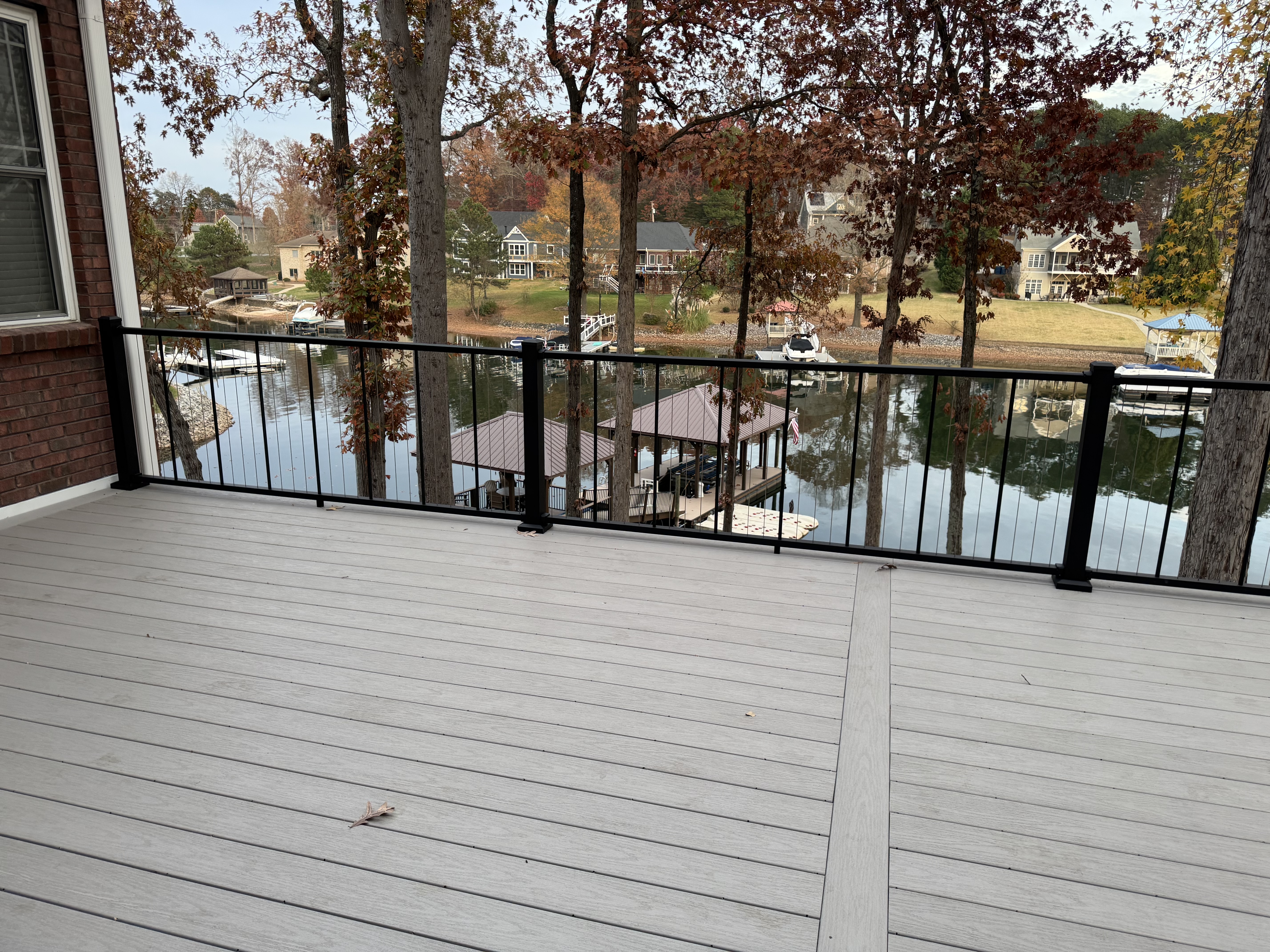 This Sherrills Ford homeowner wanted a modern, low-maintenance deck with an open feel that wouldn't block their view. We built a composite deck with a sleek vertical cable railing system that provides safety without sacrificing sightlines. The cable railing gives the space a contemporary edge while the composite decking ensures years of maintenance-free enjoyment.