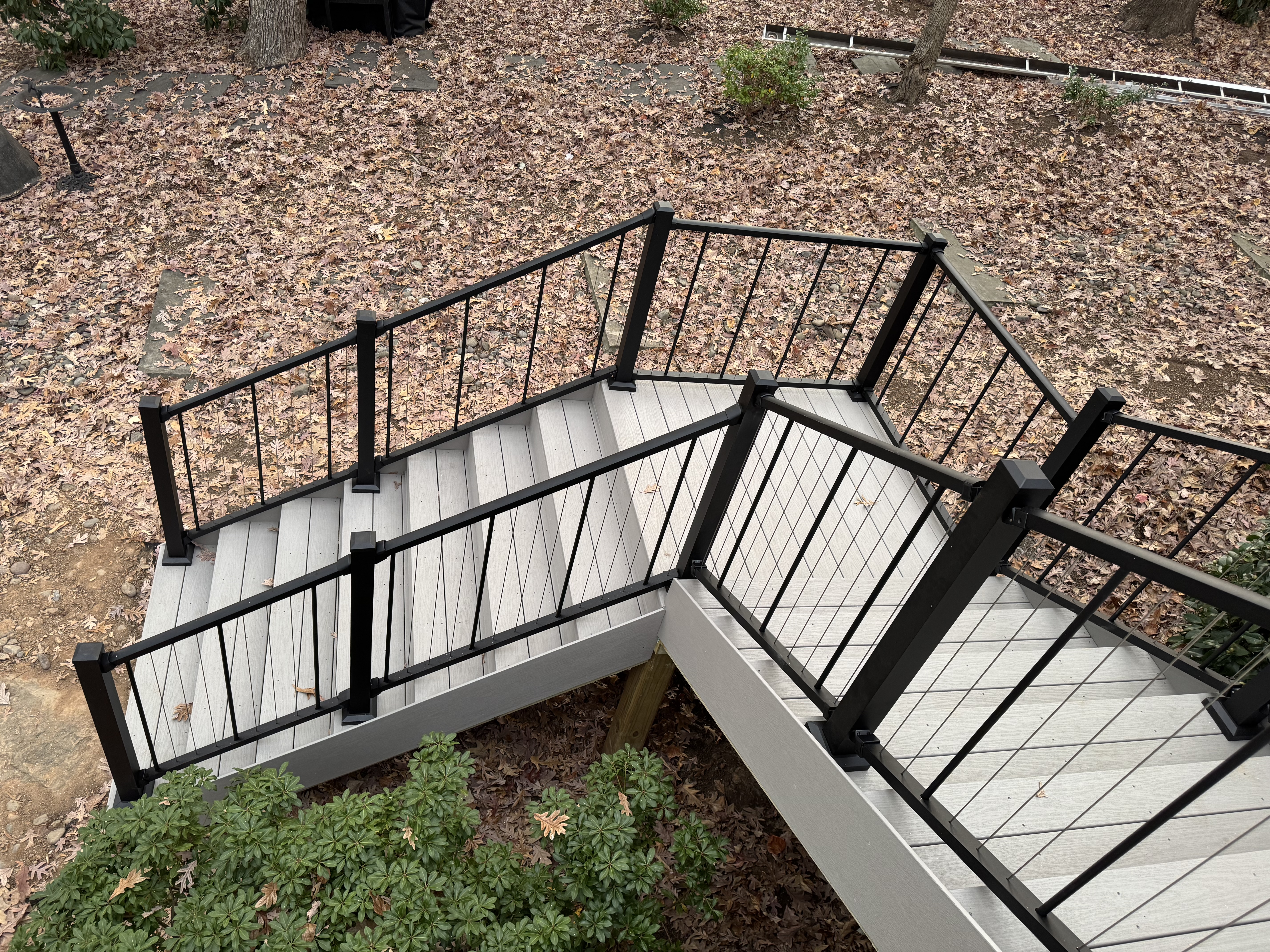 Composite decking, vertical cable railing system, stainless steel cables